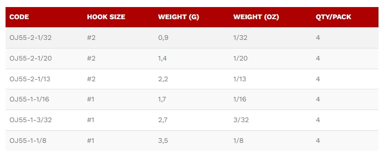 La OJ55 Weedless Wacky Jig Head es la elección perfecta para pescadores que buscan máxima eficacia en fondos duros, rocosos o zonas comprometidas donde otros montajes fallan.