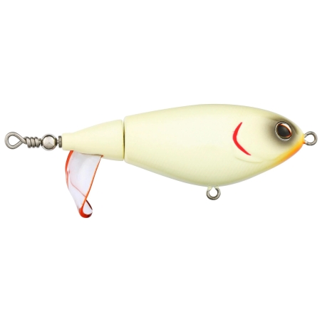 El secreto de su efectividad está en su cola de hélice duradera y de gran superficie, que produce salpicaduras, vibraciones y un sonido metálico profundo que atrae a los depredadores incluso en aguas calmadas. Además, no se deforma ni se derrite dentro de la caja de señuelos, garantizando una larga vida útil incluso con uso intensivo.
