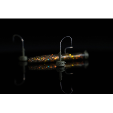 Diseño Mejorado: Se ha innovado sobre el concepto clásico de cabeza Ned al añadir una serie de detalles únicos, como un ojo empotrado que reduce los enganches y protege el nudo al pescar en fondos rocosos.