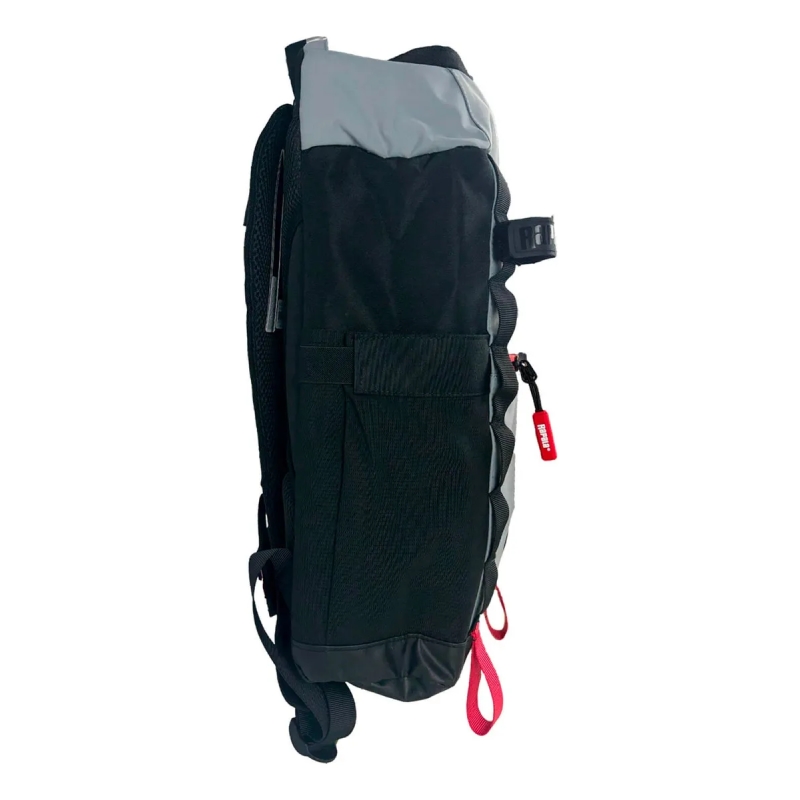 Cada detalle está pensado para la funcionalidad: loops con cierre de velcro para sujetar herramientas o accesorios por fuera de la mochila, bolsillo lateral para botella de agua, soporte para alicate en la correa, y cremalleras resistentes a la corrosión, asegurando durabilidad y rendimiento en entornos húmedos o salinos.