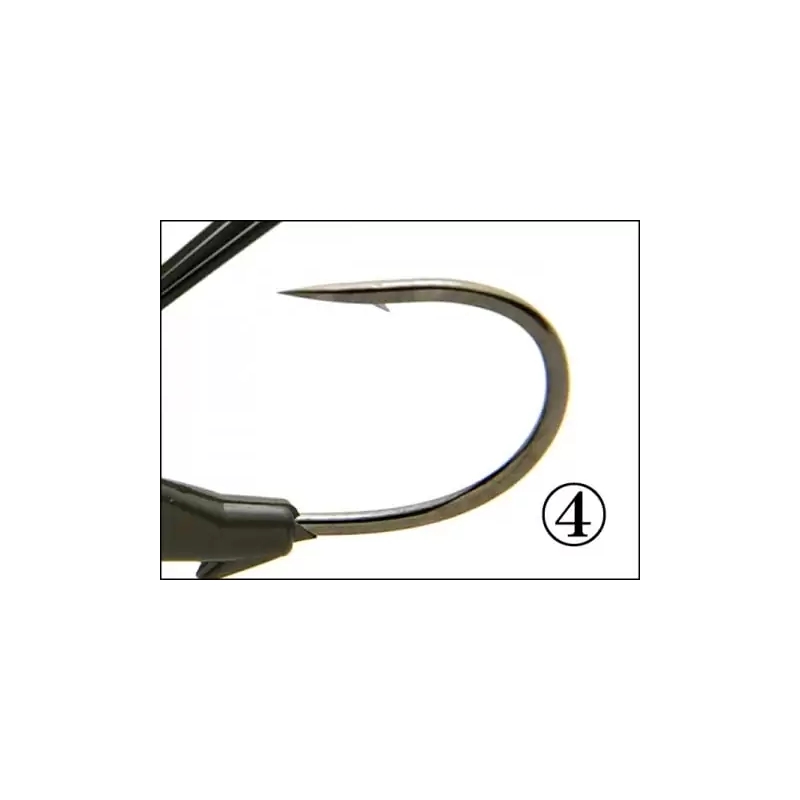 El anzuelo Wide Gap #2/0, diseñado a medida, asegura una clavada firme y precisa, mientras que la doble lengüeta de retención mantiene el tráiler de vinilo perfectamente alineado, evitando que se desplace durante los lances o la recuperación.
