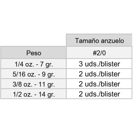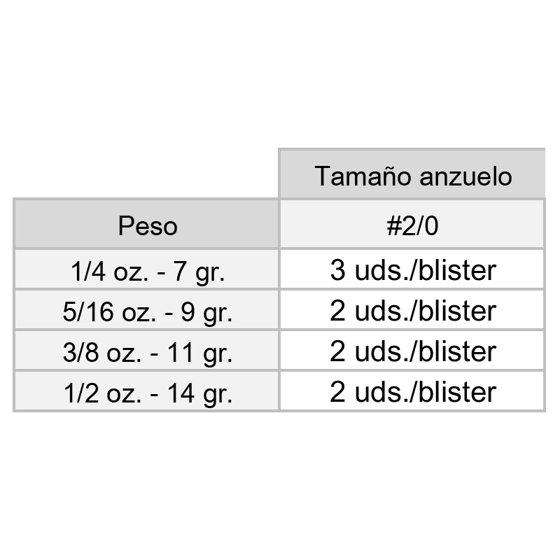 Además, el peso grabado lateralmente permite identificar rápidamente cada jig, incluso fuera del embalaje, facilitando la organización y el cambio rápido durante la jornada de pesca.