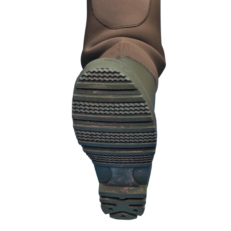 Fabricado con neopreno de 4 mm de grosor, este vadeador ofrece un excelente aislamiento térmico sin sacrificar movilidad. Sus rodillas reforzadas añaden una capa extra de protección en las zonas más expuestas al desgaste, asegurando una vida útil más larga y segura, tanto si pescas desde pato, orilla o vadeando ríos y embalses.