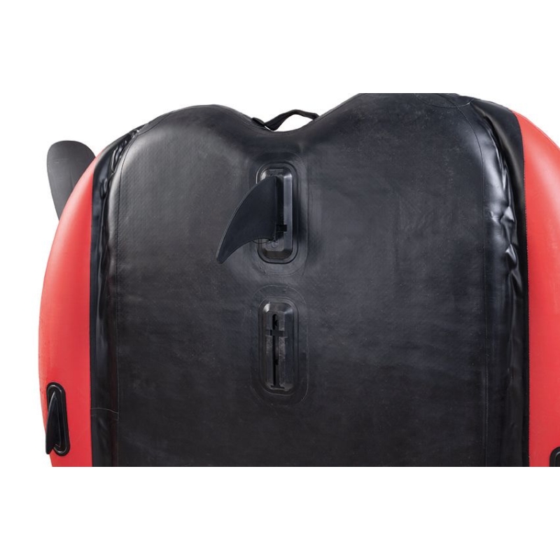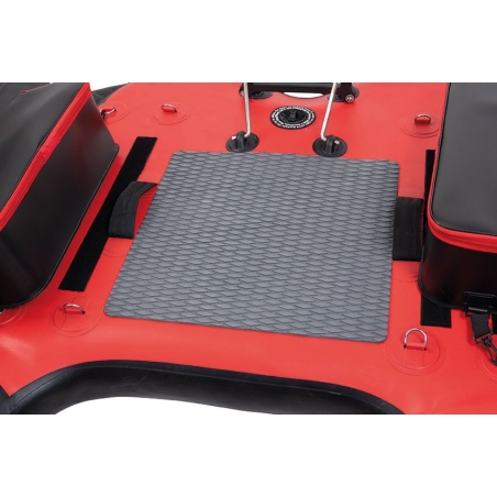 Incluye asiento de alta presión, bolsillos rígidos de PVC de gran capacidad, barra delantera de refuerzo en aluminio, remos, soporte trasero para motor eléctrico y quillas inferiores que mejoran la estabilidad y el control en la navegación. Además, se entrega con bomba de pie de alto caudal y bolsa de transporte para facilitar su uso y almacenamiento.