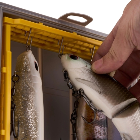 La Plano EDGE Swimbait Box es la solución definitiva para mantener tus swimbaits y glidebaits perfectamente organizados y protegidos. Diseñada para almacenar hasta 24 señuelos montados, esta caja mantiene cada cebo suspendido mediante un sistema por gravedad que evita la deformación de las colas y preserva al máximo su acción original.