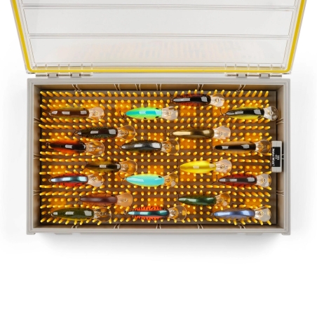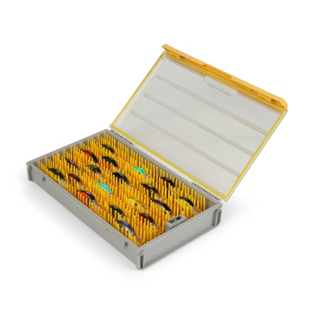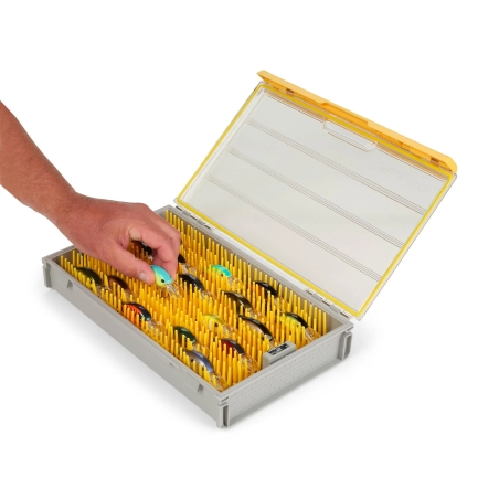 La EDGE™ Master Crankbait Box de Plano® está especialmente diseñada para almacenar y proteger tus crankbaits pequeños de forma segura, organizada y sin enredos. Gracias a su innovador sistema de "dedos" de silicona personalizables, cada señuelo queda perfectamente sujeto, evitando daños en las pinturas, anzuelos o acabados durante el transporte.