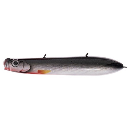 Popper de gran peso específico y gran capacidad de lance. Su posición de reposo en el agua, con la cola hundida y la cabeza fuera, se ve perturbada rápidamente, con los primeros toques que imprimimos a nuestra caña, convirtiéndose en un perfecto y controlado zigzagueo que atraerá incluso a los más inactivos depredadores. Perfecto para prospecciones de zonas amplias de agua, tanto en interior como en mar.