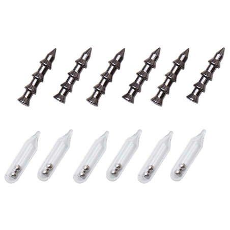 Gracias a la combinación de rattles sonoros y spikes de 1,9 g, puedes personalizar la acción de tus señuelos de forma rápida y sencilla. El sonido generado por el rattle provoca ataques por reacción, mientras que el spike añade el peso justo para modificar la caída y la natación del vinilo.