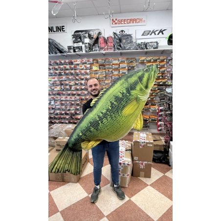 El GABY Monster Black Bass 150 cm es una pieza espectacular, pensada para quienes quieren llevar su pasión por el bass al siguiente nivel. Impactante, realista y exclusivo, es el rey absoluto de los cojines decorativos de pesca.
