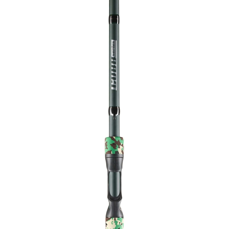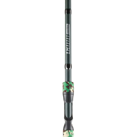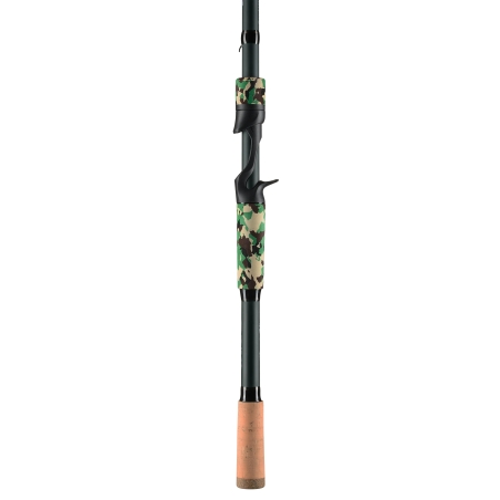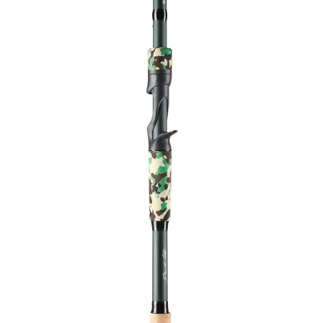 Empuñadura híbrida de EVA camuflada y corcho natural para un agarre cómodo y firme en cualquier condición.