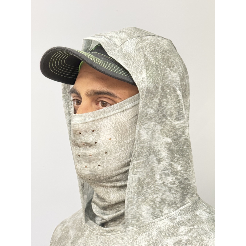 Camisa técnica de pesca con protección solar UPF 50, diseñada para largas jornadas bajo el sol. Incorpora gorro y braga de cuello perforado integrados para mayor cobertura sin perder ventilación. Su tejido técnico ultra liviano, muy liso y de secado en minutos, mantiene el cuerpo fresco, seco y cómodo en todo momento. Ideal para pato, kayak, embarcación u orilla. Disponible desde XS hasta 3XL.