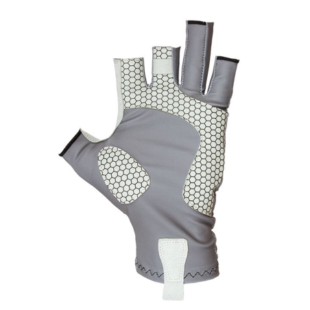 La palma integra un tratamiento antideslizante en patrón hexagonal, que mejora el agarre sobre cañas, carretes y peces, incluso con las manos húmedas.