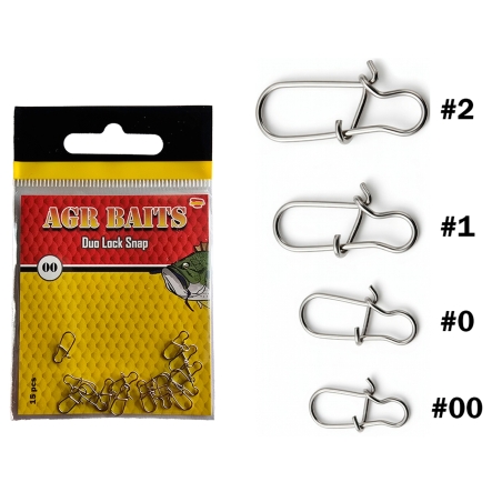 Las AGR Duo Lock Snap en acabado Nickel son el complemento imprescindible para pescadores de bass y depredadores que buscan máxima seguridad sin sacrificar comodidad ni rapidez.