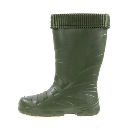 Fabricación en EVA Ultra-Light: Fabricadas íntegramente en Etileno-Vinil-Acetato (EVA), un material revolucionario que destaca por ser extremadamente ligero y flexible. A diferencia de las botas de agua de goma tradicionales, estas ofrecen un aislamiento térmico natural superior, manteniendo tus pies calientes incluso en condiciones extremas.