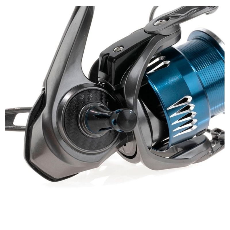 Equipa una manivela doble de carbono con pomos ergonómicos engomados, ofreciendo un control preciso durante la recuperación. Además, el pick-up con guía-hilos sobredimensionado mejora la gestión de la línea y reduce posibles enredos.